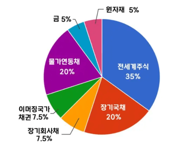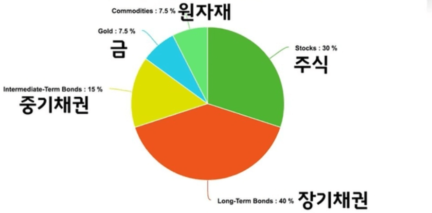 올웨더 포트폴리오의 기본 구성 비율을 다음과 같습니다.