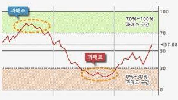 70 이상은 과매수, 30 이하는 과매도